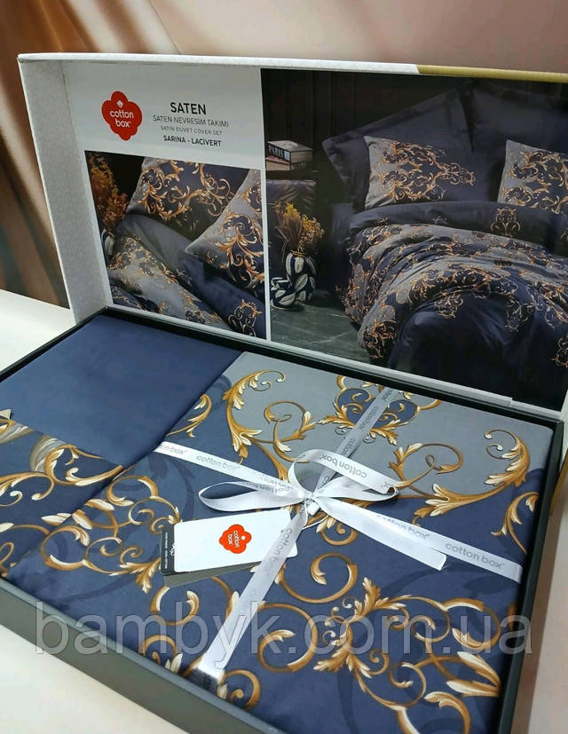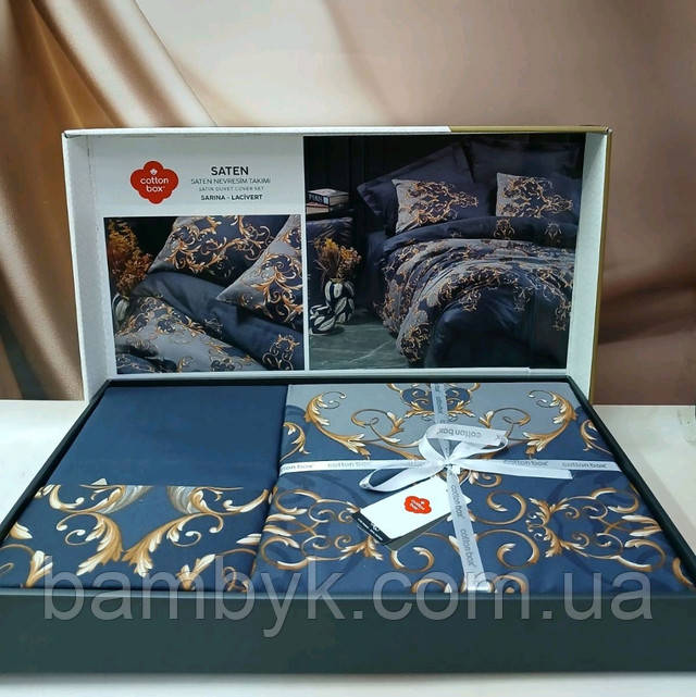 Постільна білизна Cotton Box "Sarina Lacivert" сатин DeLux преміум якість бавовняне розмір євроТуреччина
