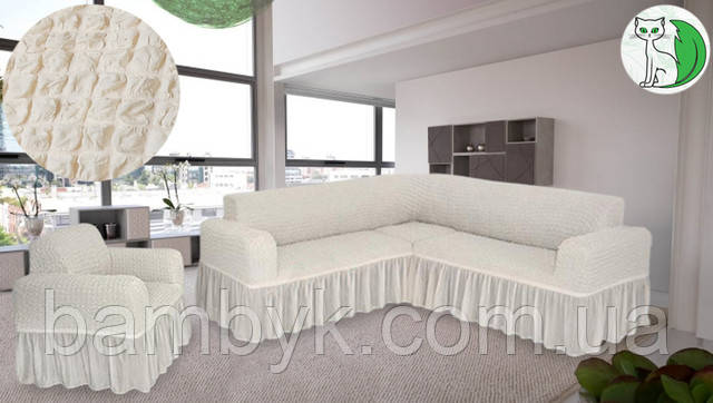 Чохол на кутовий диван і один чохол на крісло з оборкою універсальний жатка-креш Concordia Venera Туреччина