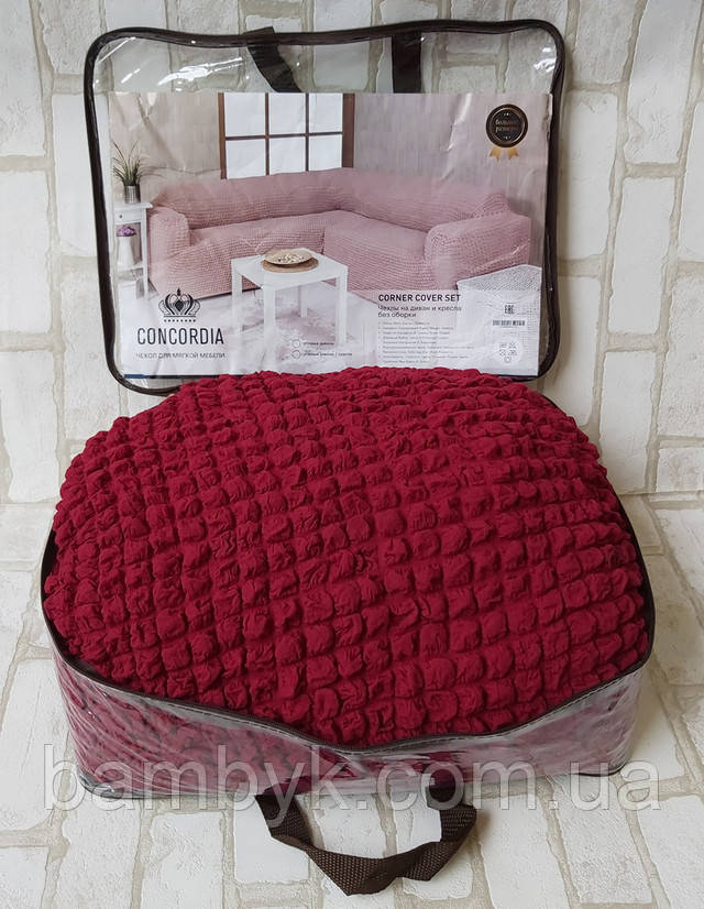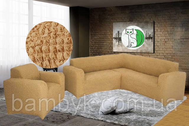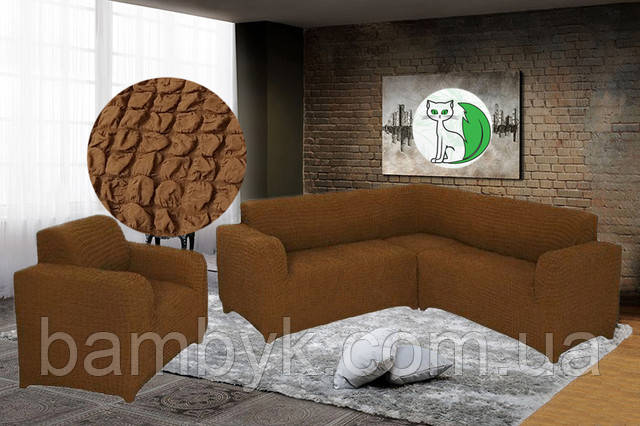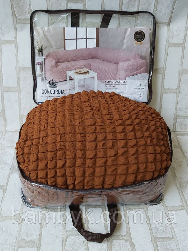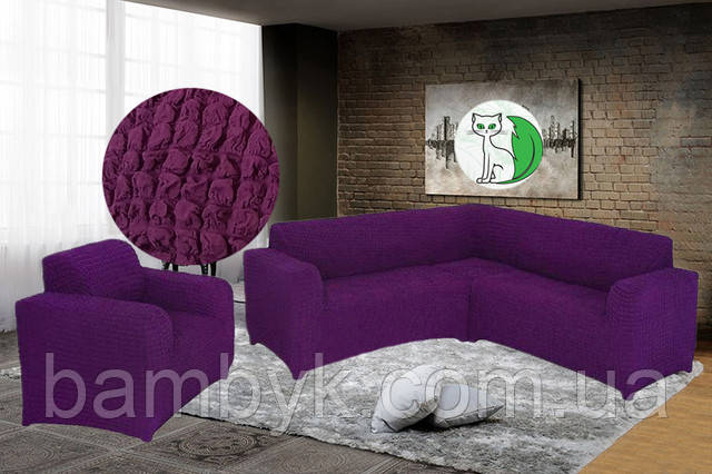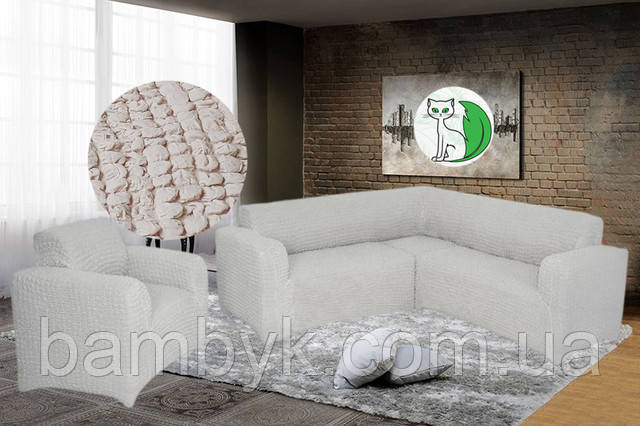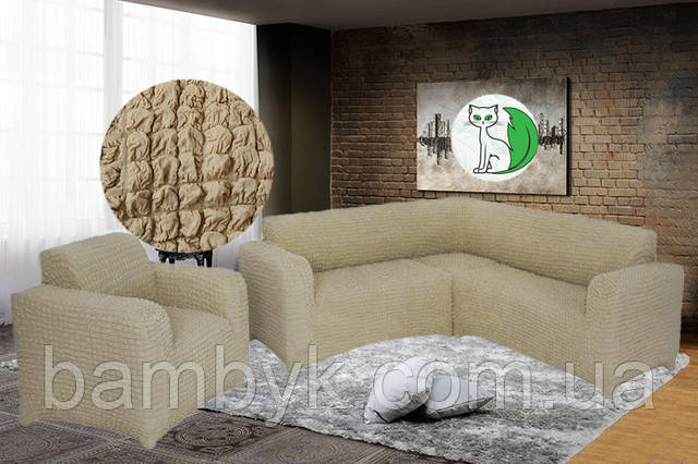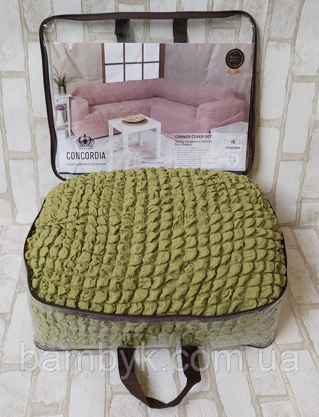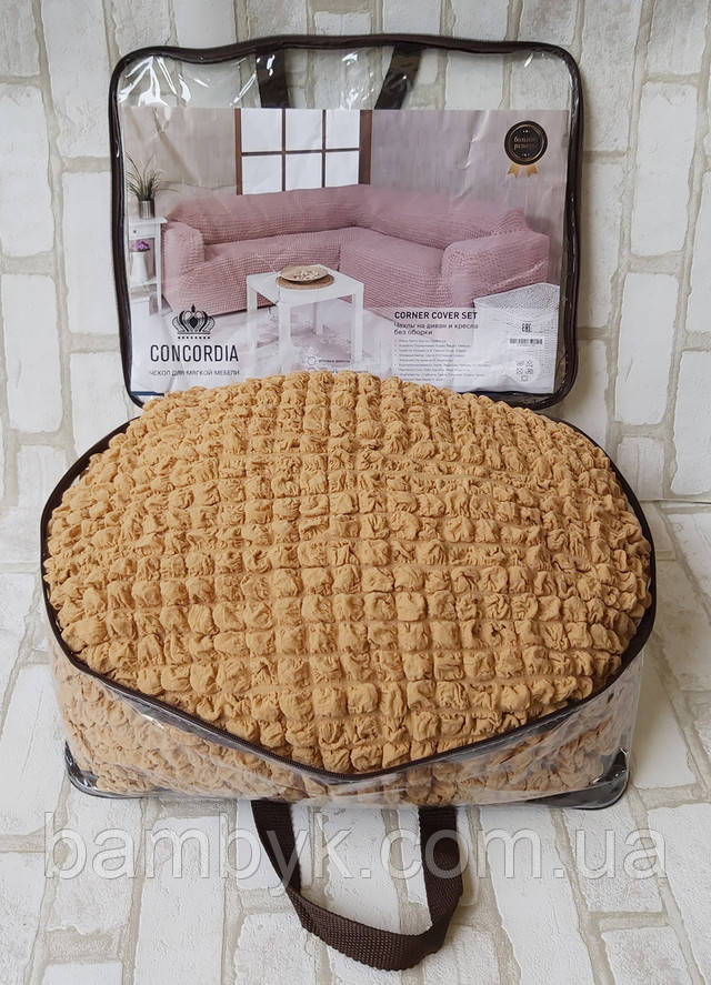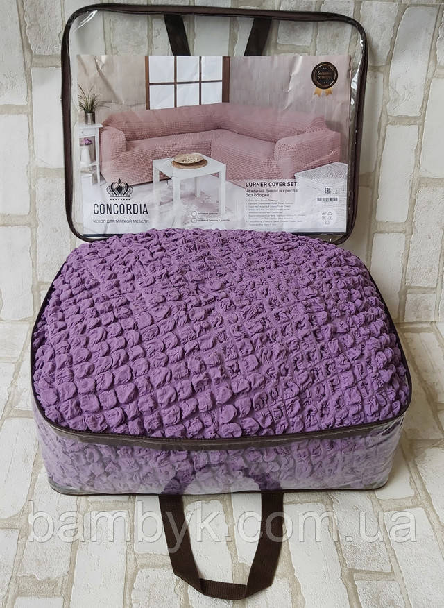 Чохол на кутовий диван з чохлом на крісло без оборки жатка-креш натяжний Concordia Туреччина