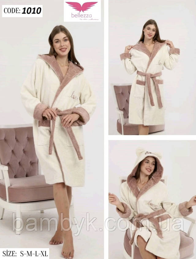 Короткий молодіжний банний халат з капюшоном бамбуковий Bellezza by Ebru Туреччина BL-1010
