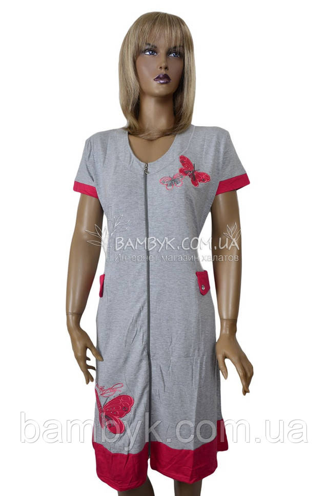 Халат трикотажний, на блискавці з двома боковими кишенями і коротким рукавом,