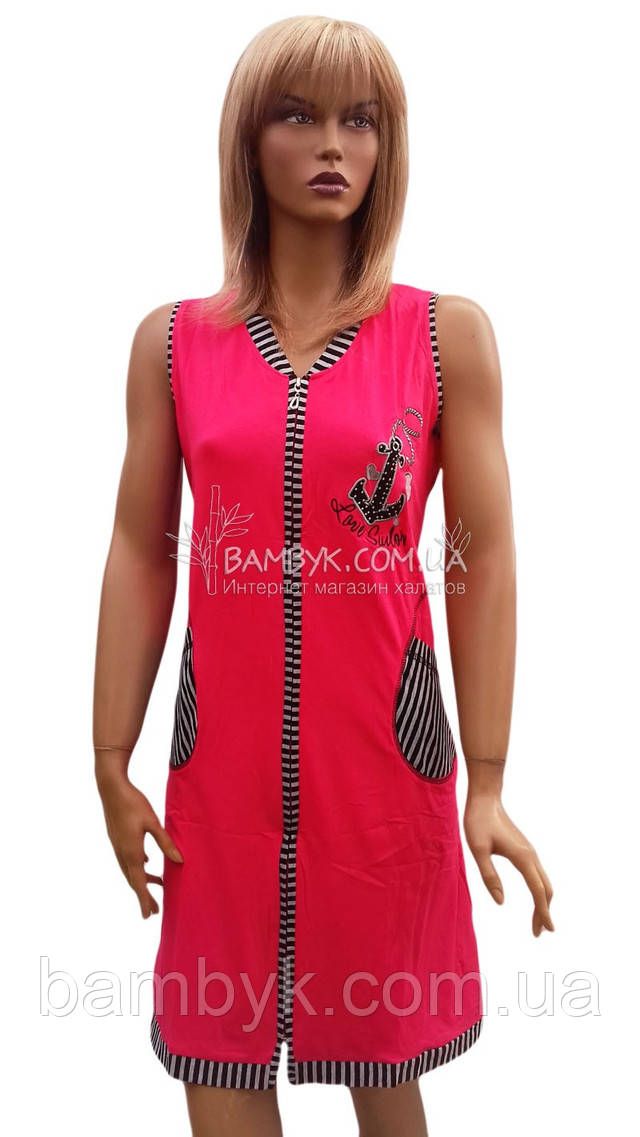Халат жіночий трикотажний без рукав літній на блискавці "Marylin" №035