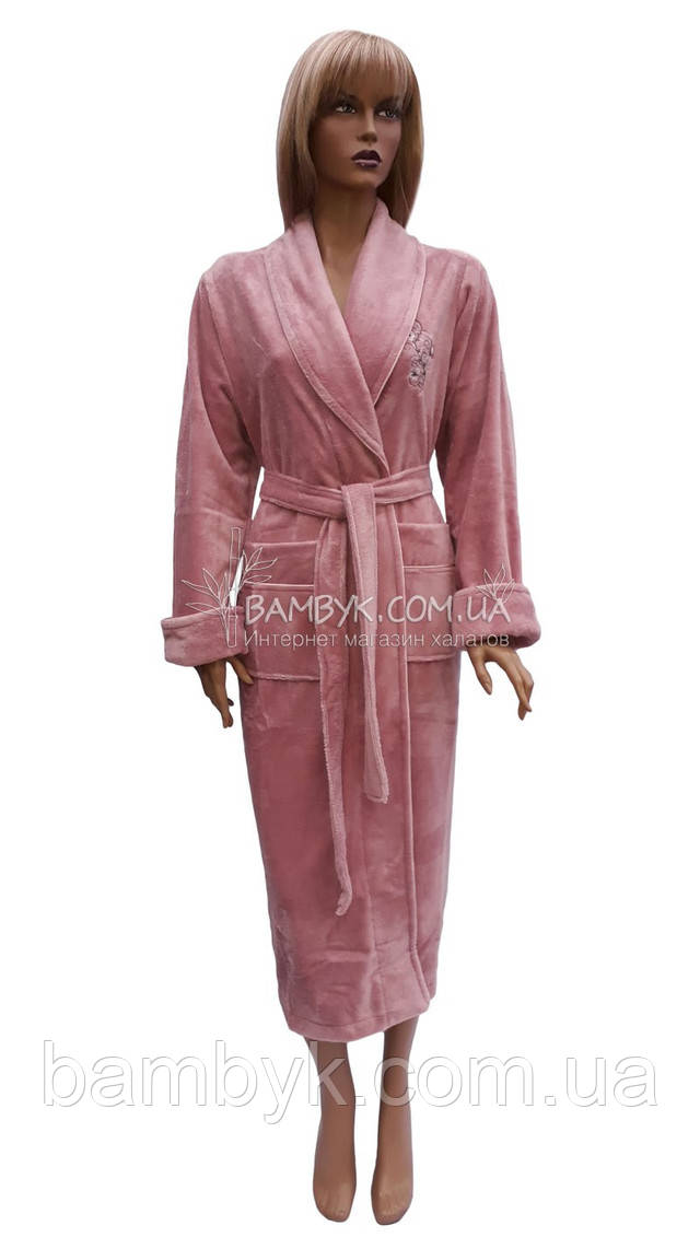 Довгий бамбуковий халат Nusa кольору "сухої троянди" NS-3625